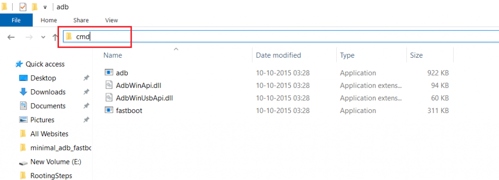 Cd path to the adb and fastboot folder and press enter.